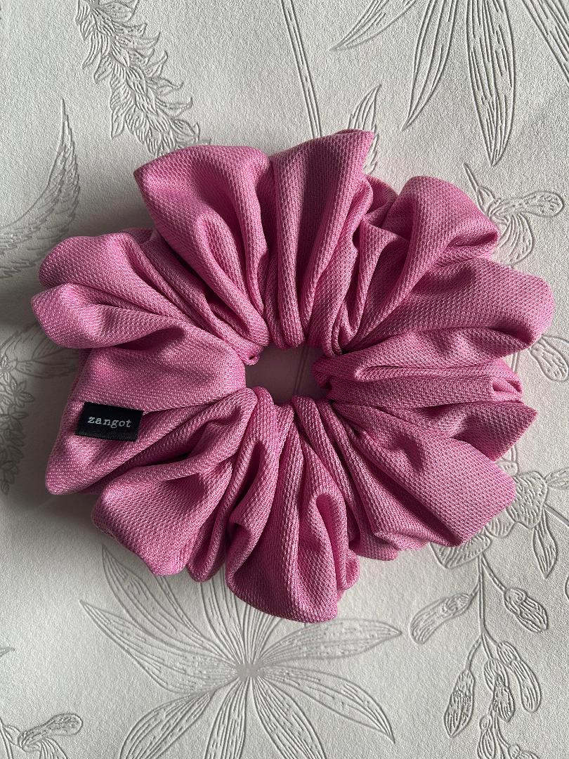 Large Multicoloured Pink, White, and Pink Scrunchie. This fabric is composed of cotton and polyester.