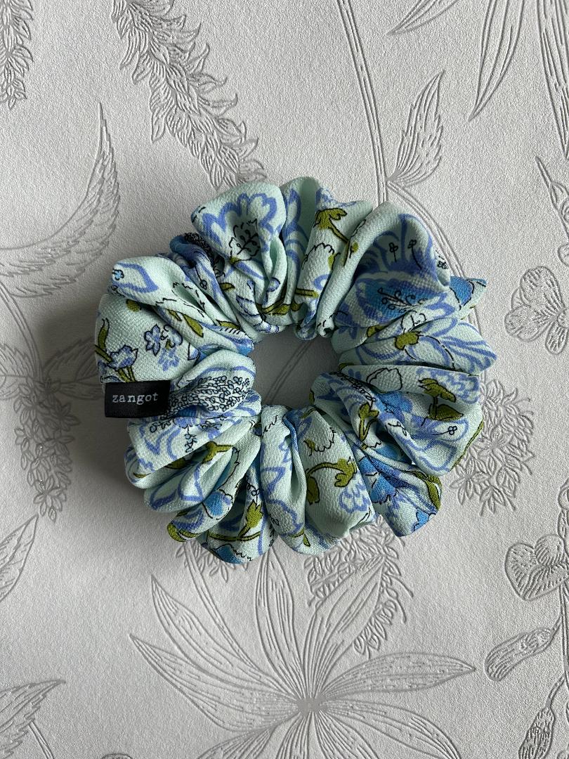 Floral Multicoloured Blue Scrunchie. This fabric is 100% polyester.